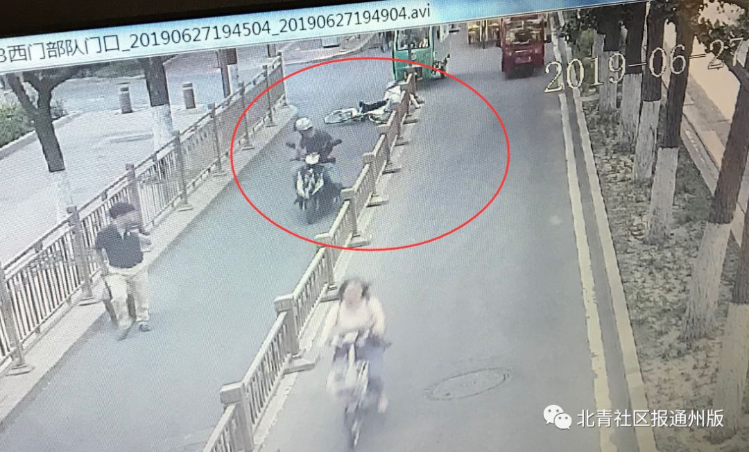 张女士系某公寓平台的管家,6月27日晚上,带看客户后的张女士骑着公租自行车回家,19:40分左右,张女士由东向西走到西门路口附近(新华西街与通惠南路十字往西约20米处),突然被一辆黑色踏板摩托车撞倒,来不及反应的张女士在摔倒时,脖子磕到了旁边的护栏上。“当时就说不出话了。”而那位肇事司机却骑着摩托车扬长而去。