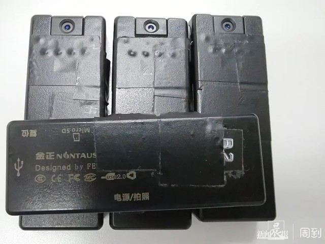 民警询问情况后,在范某某右脚穿的黑色运动鞋上找到其用于偷拍的设备,并从其身上查获用于偷拍的录像设备4套,内存卡3张。民警立即将其传唤至民警值班室。