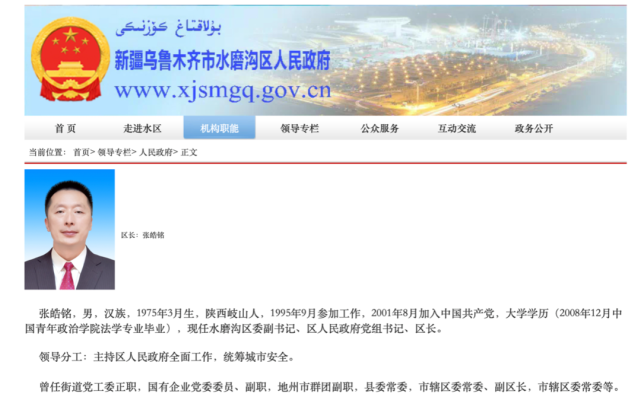 这一消息也显示,张皓铭已不再担任水磨沟区区长。