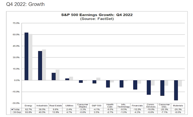 标普500指数各板块2022年四季度盈利预测(图源:FactSet)