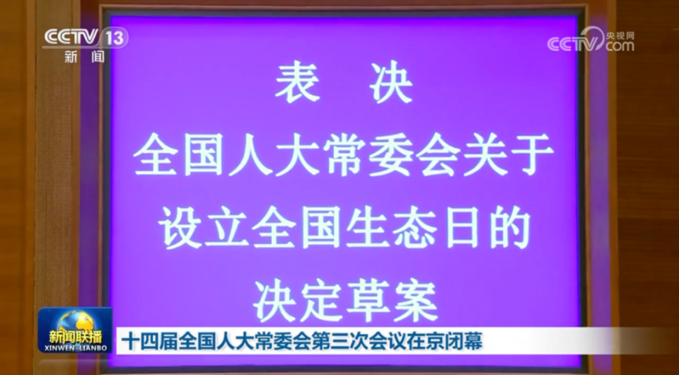 在全国生态环境保护大会召开前,6月28日,十四届全国人大常委会第三次会议决定,将8月15日设立为“全国生态日”。
