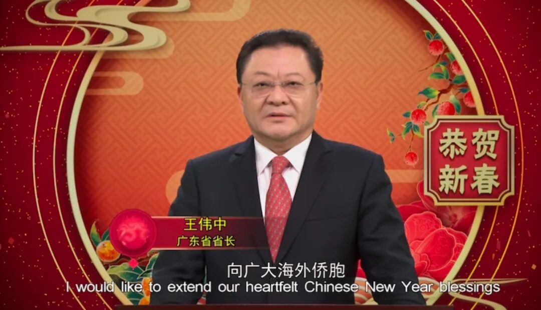 1月28日,广东省省长王伟中出镜给大家拜年,“我代表广东省人民政府和全省人民,向广大海外侨胞、港澳台同胞和世界各国朋友,致以美好的新春祝福和诚挚的节日问候!”