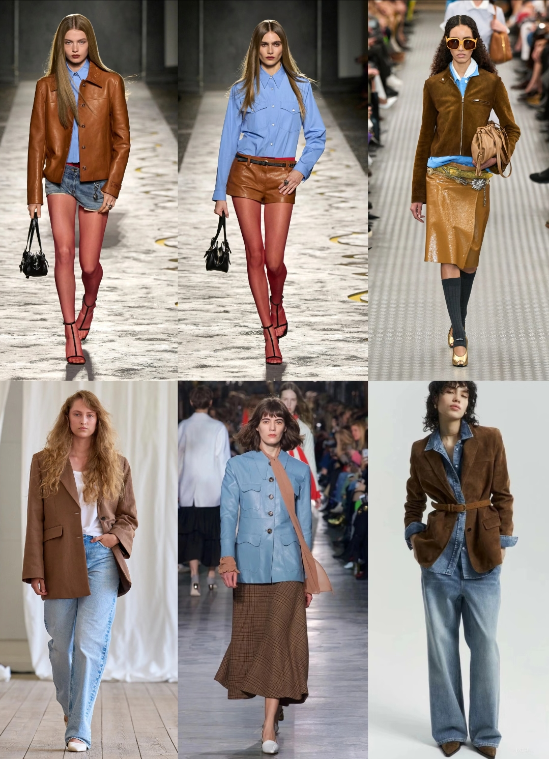 质感拉满的棕色系,像一杯浓郁的热可可,丹宁蓝注入街头灵魂,牛仔裤破洞设计打破常规;baby蓝的上衣搭配纯白色蓬蓬裙,又是另一种感觉,既保留了少女的灵动感,又注入了酷飒气场。