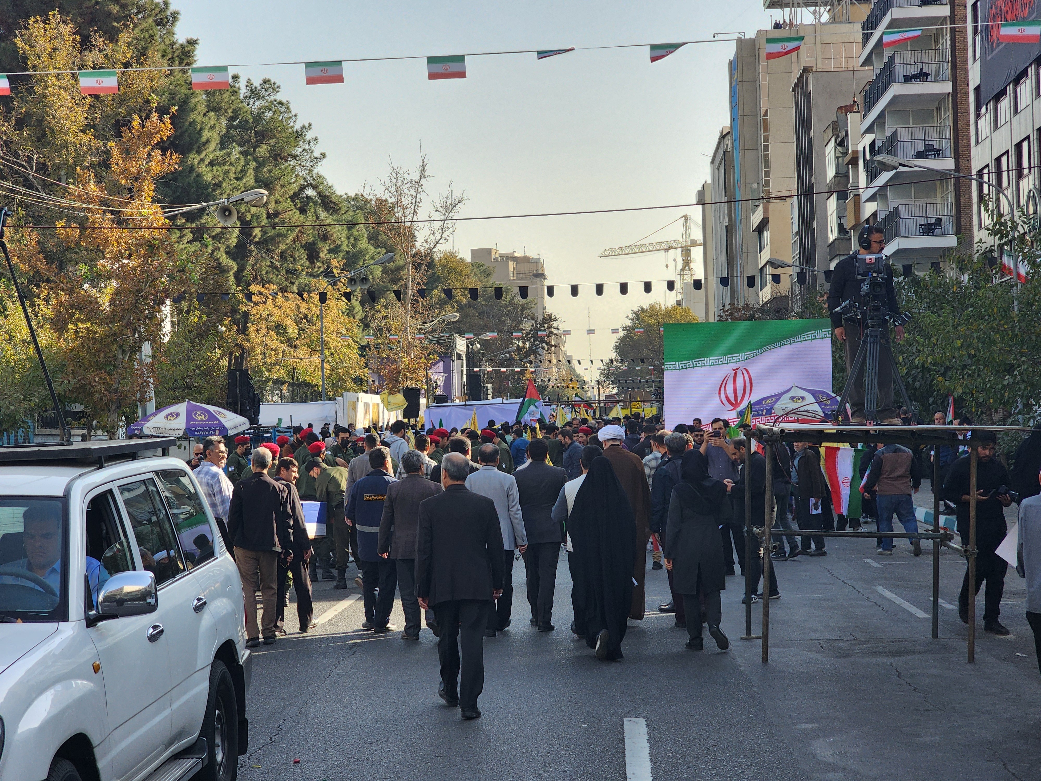 在首都德黑兰,数万伊朗民众来到集会现场。民众手持伊朗国旗,并高呼反美、反以口号。民众谴责称,在美国的支持下,以色列在地区犯下诸多罪行,美国和以色列是造成中东地区动荡的主要因素。