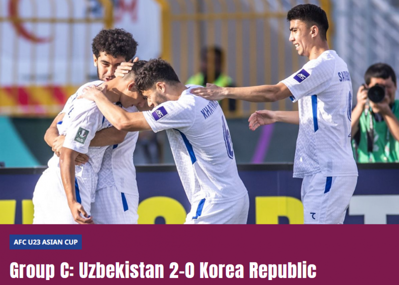 乌兹别克斯坦U23队显示出良好的势头,他们以2比0完胜韩国U23队后,锁定本组头名,韩国U23队则以小组第2名身份跻身8强。