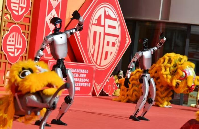 机器人与舞狮队同台献艺。
