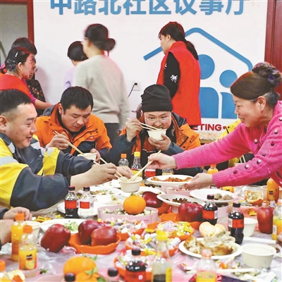 2月9日,农历小年前夕,朝阳区团结湖街道中路北社区党群服务中心摆起热腾腾的饺子宴,十多位忙碌一上午的快递员、外卖骑手,在这里吃上了满含“妈妈的味道”的暖心午餐。据悉,今年春节假期,团结湖街道451名新就业群体中,近1/3将值守在岗,除饺子宴、慰问礼品外,街道党群服务中心快递驿站也将24小时开放,用全方位服务为骑手们送上春节暖意。