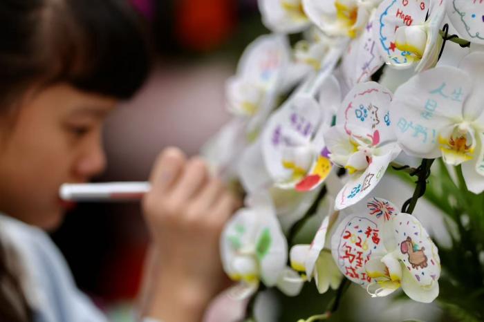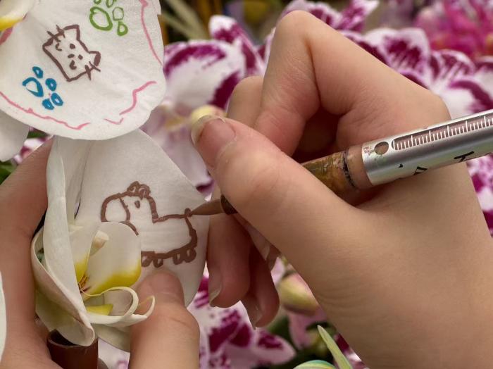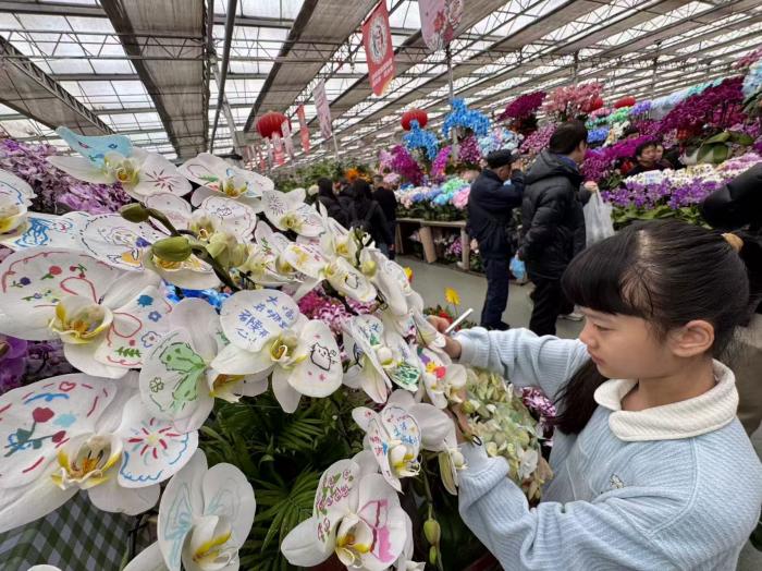 北京黄土岗花卉市场里,一组画在蝴蝶兰上的童趣手绘走红网络,创作者是来自福建漳州的花商家庭小女儿孙婧馨(小名多多),质朴又暖心的创意,让不少网友直呼“这才是年味”。