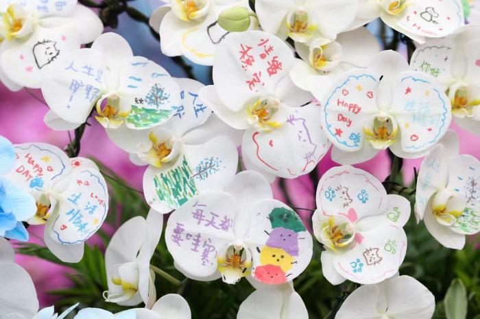 稚嫩的笔触、天真的图案,让原本喜庆的蝴蝶兰多了一份独有的童真与温度。