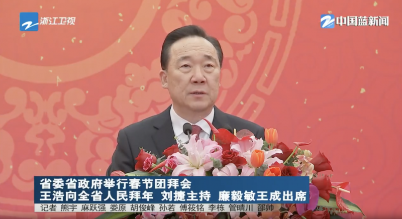 在浙江的团拜会上,浙江省委书记王浩致辞。他说,“我们坚信,只要全省上下一以贯之,心往一处想、劲往一处使,各项事业就一定能够‘一年更比一年好’,人民群众的日子就一定能够‘芝麻开花节节高’。”