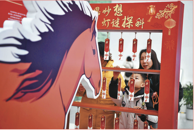 参观者在中国科技馆内猜新春灯谜