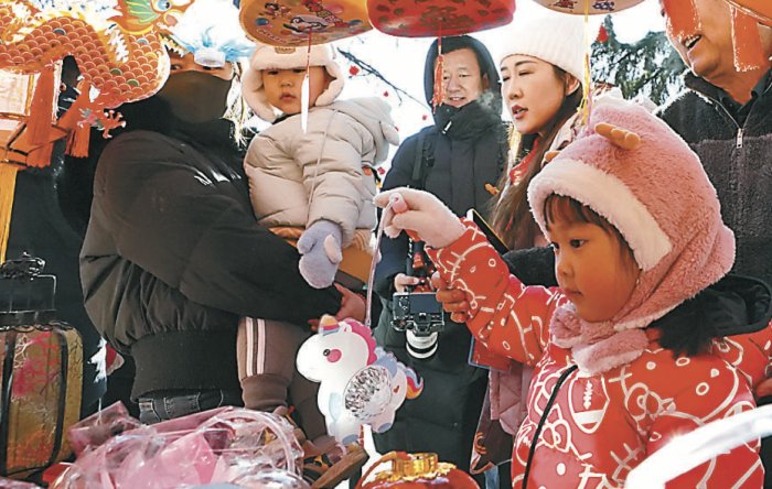 厂甸庙会小年预热活动现场,小女孩挑选年货