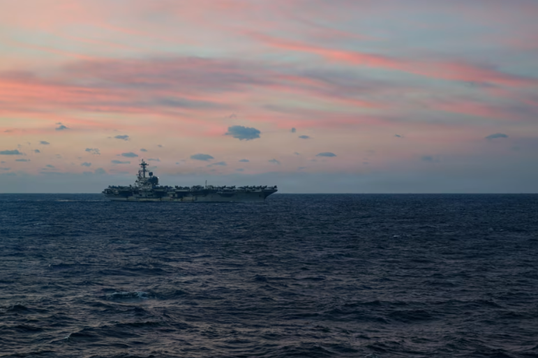 据悉,该航母将与“林肯”号和“福特”号航母打击群汇合,这意味着美国在该地区可能将同时部署三艘航母。