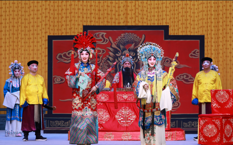 率先登场的《谢瑶环》,是考验演员行当融合与人物塑造能力的经典剧目。为准确把握这部戏的艺术格调和人物特性,路洁向天津京剧名家王艳潜心问艺。路洁在学习中也并未刻板复制照搬,而是谨遵戏曲表演规律,严守刻画人物的技艺章法。剧中,路洁将青衣的端庄娴静与小生的英气洒脱完美融合,实现了“刚”与“柔”的艺术平衡。表演中,路洁精准把握角色的双重特质:身着红蟒官服亮相时,台步沉稳、眼神坚毅,尽显巡按大人的凛然正气;“头公堂”一折的大段念白,吐字清晰、劲头十足,将谢瑶环不畏权奸的刚直刻画得入木三分;而在“花园相会”场次,则切换为婉转旖旎的南梆子唱腔,配合遮面团扇的细腻身段,将少女的娇羞柔情与对袁行健的情意绵绵演绎得丝丝入扣,与小生演员刘明哲的对手戏默契十足。全剧高潮“二公堂”一折中,路洁的“高拨子”唱腔高亢挺拔,甩发技巧与踉跄台步精准展现角色受刑后的刚毅不屈;随后的娃娃调借鉴小生唱法,字字铿锵、痛斥奸佞,既有为民请命的侠骨,又不失忠贞不渝的柔情。