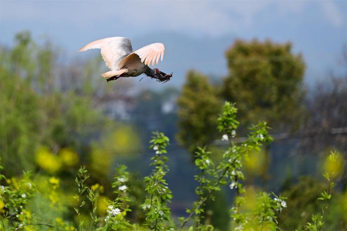每年春天,“朱鹮之乡”陕西省汉中市洋县迎来朱鹮繁育季。在朱鹮国家级自然保护区朱鹮人工繁育中心周边村落的油菜花田与林间,野生朱鹮衔枝筑巢、觅食嬉戏的身影随处可见。