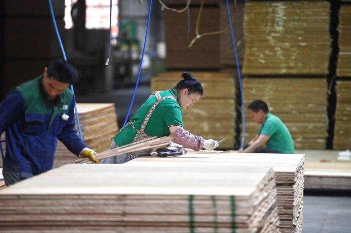 广西柳州市融安县已集聚香杉加工企业230余家,年产实木生态板超250万立方米,2025年全产业链产值超190亿元,为当地群众提供了2万多个就业岗位。 新华社记者 黄孝邦 摄