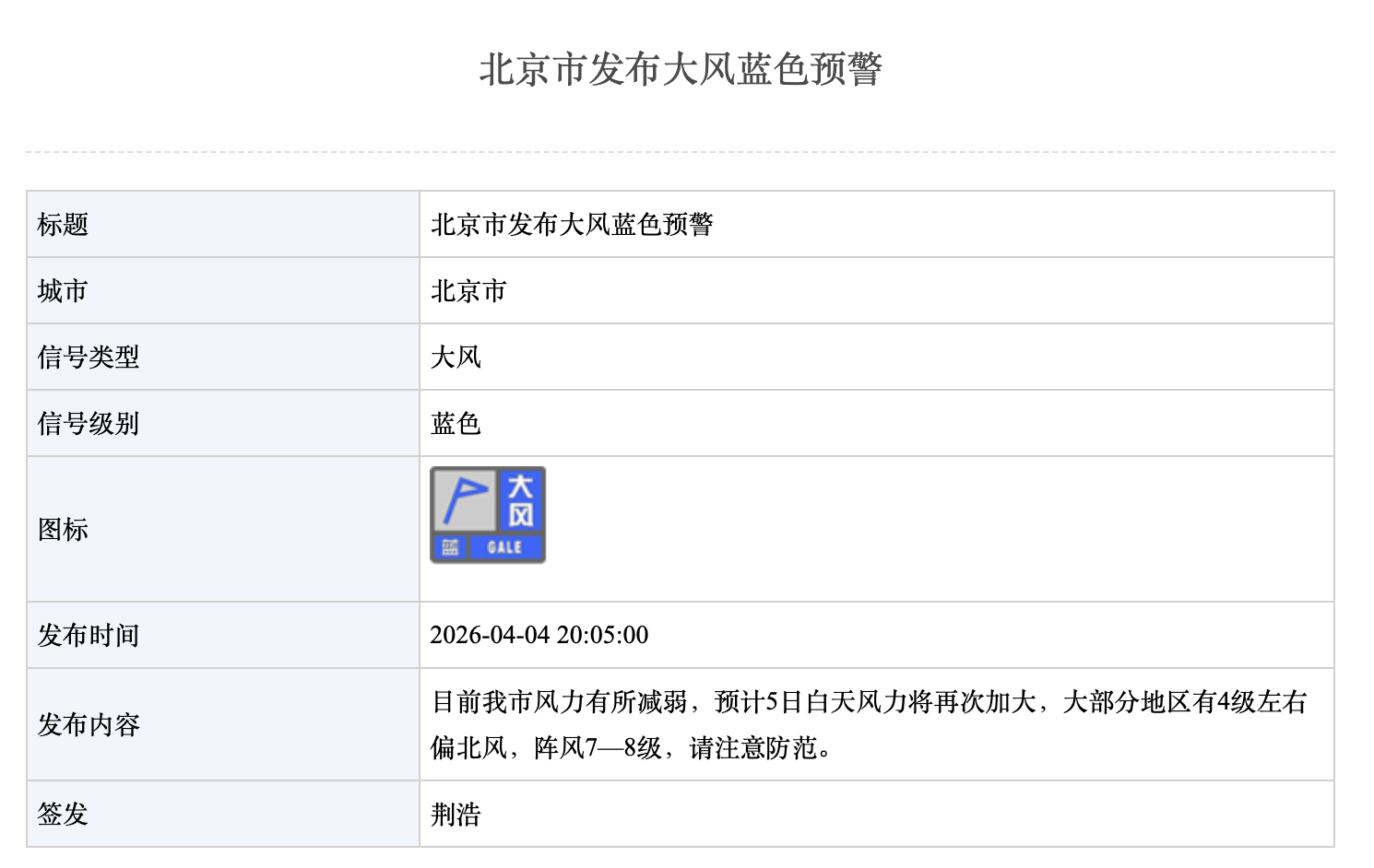 阵风7-8级!北京市发布大风蓝色预警
