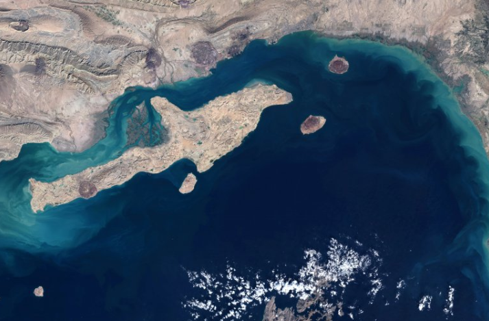阿曼湾位于伊朗与阿曼之间,西北经霍尔木兹海峡连通波斯湾。(总台记者 陈林聪)