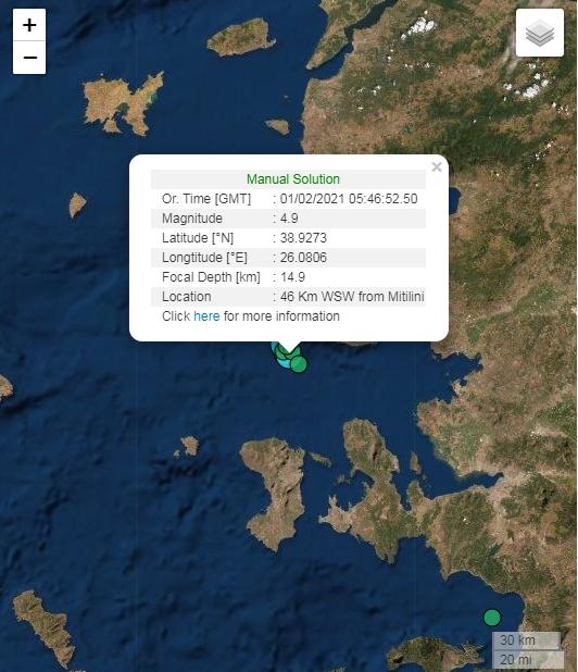 当地时间2月1日早7时46分,据雅典国家天文台地球动力研究所消息,希腊莱斯沃斯岛附近海域发生里氏4.9级地震。震中位于莱斯沃斯首府米特里尼西南46公里海域,震源深度14.9千米。随后在7时47分、8时又接连发生两次分别为里氏4.8级和里氏4.5级的余震。目前暂无人员伤亡及财产损失的报告。
