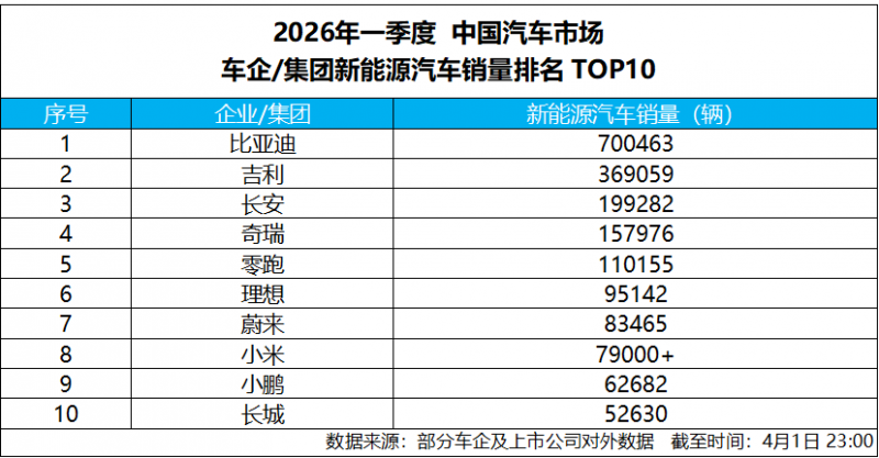 4 月 1 日,比亚迪发布 2026 年 3 月产销数据,单月总销量达300222 辆,强势突破 30 万辆大关,斩获中国车企销量冠军,并连续 58 个月蝉联中国新能源汽车销量冠军,持续稳固行业龙头地位。截至目前,比亚迪新能源汽车累计销量已超1580 万辆,一季度累计销售 700463 辆,以硬核数据印证技术与规模双重实力,助力一季度完美收官。