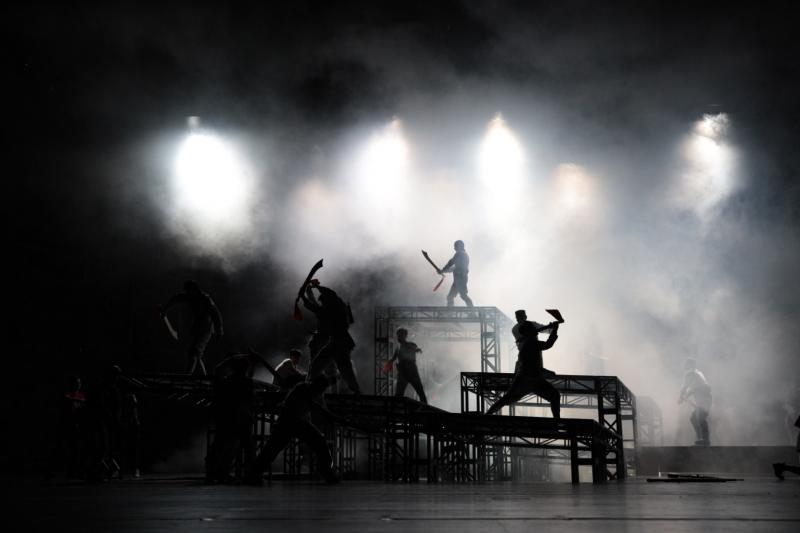 舞美设计张武告诉记者:“整个戏剧场舞台的每一个表演区,演员所能涉及的每一组动作空间全部由金属铸造,使观众感受到金属与金属的撞击,能够身临其境于战争的惨烈。十几块机械平台纵横交错,上下翻转,全方位展示国家大剧院舞台机械。观众将如同穿越时空,体验前所未有的感观经历。”题材上、导演上和舞美设计上的硬核让这部戏有着独特的刚劲,抒发着真实的情怀,希望能够感动走进剧场的观众。
