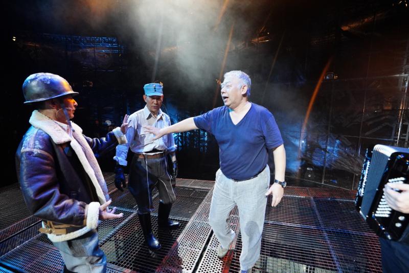 舞台上一部旧的军用汽车和全金属打造的高坡,9月25日下午,记者走进国家大剧院戏剧场,大型原创话剧《选择》正在这里热火朝天地排练,并将于10月2日至6日迎来首演。作为国家大剧院第90部制作剧目,话剧《抉择》将全方位呈现国家大剧院舞台机械的强大功能。在记者探班时,演员靳东赶来探班,他是应导演宮晓东的邀请前来与演员交流舞台演出的。靳东说自己是宮导的小师弟和晚辈,对宫导的艺术很是敬重和佩服。宫晓东介绍,靳东有很多朋友和学生也在剧组里,主演吴京安见到靳东后很快熟络地聊了起来。