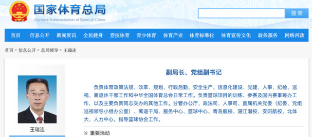 他现任国家体育总局副局长、党组副书记,负责体育政策法规、改革、规划、行政后勤、安全生产、信息化建设、党建、人事、纪检、巡视、离退休干部工作和中华全国体育总会日常工作。