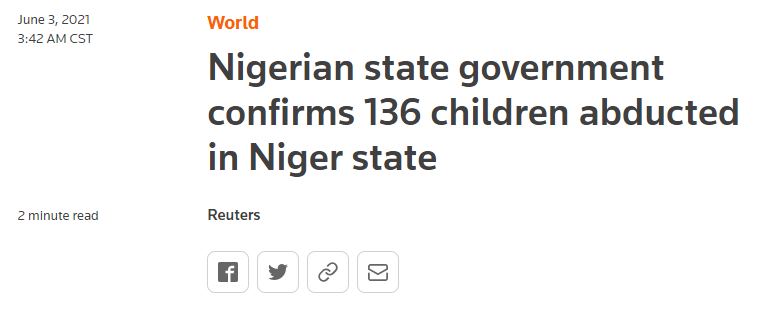 外媒:尼日利亚遭绑架儿童数量确定为136人