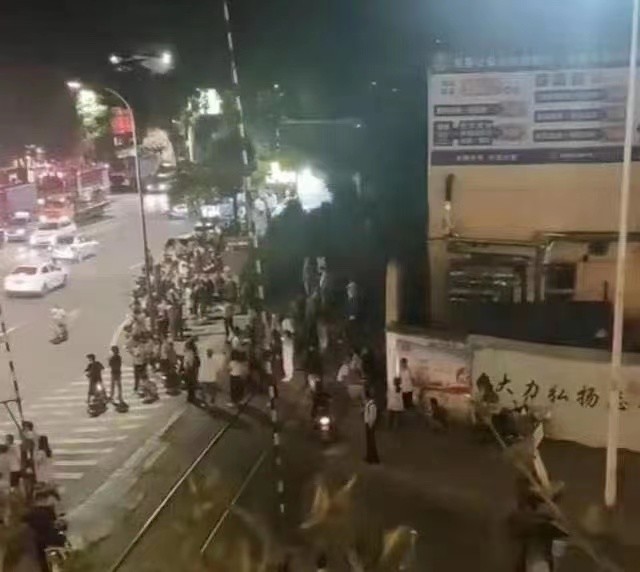 随着气味越来越大,居民们纷纷从家里跑下楼,并相互敲门通知,相继聚集在楼下,讨论着刺鼻气味的来源。