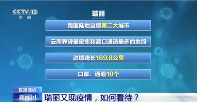 “瑞丽位于我国西南边陲,边境线长达169.8公里,且中缅两国居民在瑞丽和缅甸之间的跨境而居、生活和商业来往比较频繁,严防境外输入压力较大,要投入大量的人力、物力。”武汉大学公共卫生学院教授宇传华在7月5日接受《新闻1+1》采访。
