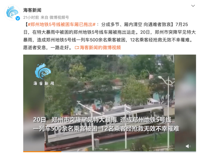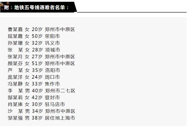 当天,郑州地铁5号线“7.20事件”情况公布: