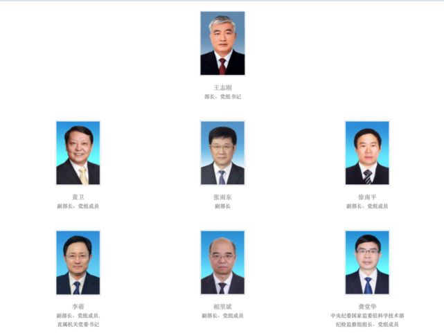 其中,科技部部长为王志刚(1957年10月生),清华大学经济管理学院管理科学与工程专业毕业,研究生学历,管理学博士学位,研究员级高工,享受国家政府特殊津贴。