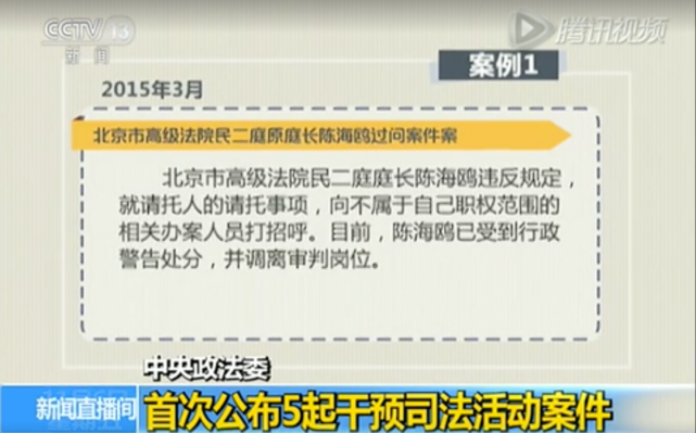 2015年11月,中央政法委首次通报“干预司法活动、插手具体案件处理典型案件”。