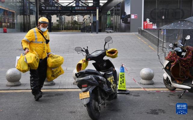 12月26日,外卖员在西安市南门外路边忙碌 新华社记者 陶明 摄