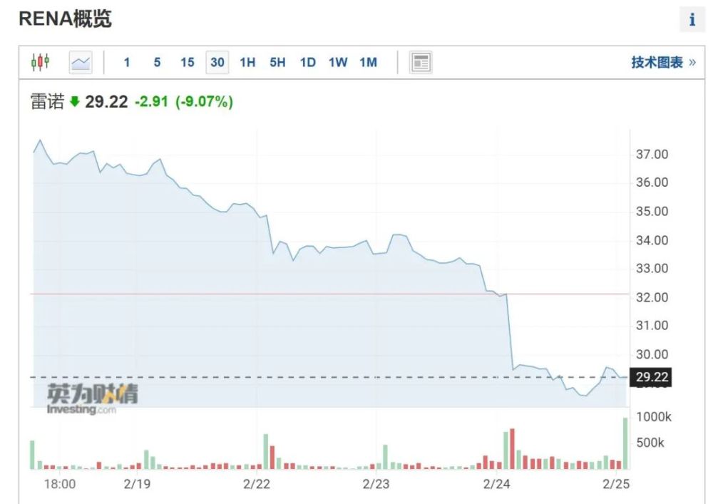资本市场没怎么买账,当地时间24日雷诺股票价格跌落超过9%。伏尔加汽车首席执行官Nicolas Maure显然没有母公司掌门人那么轻松,宣布已经开始寻找芯片供应替代方案,以防俄罗斯被欧美制裁经济。