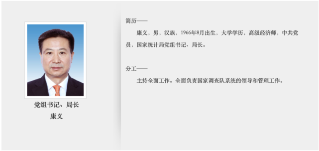 据国家统计局官网“局领导”页面显示,天津市副市长、市政府党组成员康义已出任国家统计局党组书记、局长。