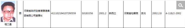 此后,程三昌又担任河南省政府驻香港豫港集团有限公司董事长。