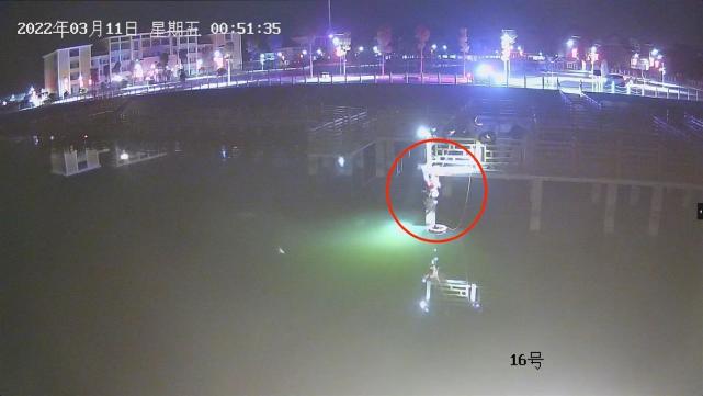 0时55分,因为无法将老方垂直救出,黄文培用绳子和救生圈将老方固定完毕,这里离岸边不算太远,他打算带着老方游到美人潭另一边,那里有阶梯可以帮助上岸。