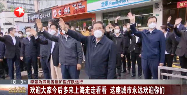 在为四川省援沪医疗队送行时,李强说,在疫情防控最紧急时刻,大家迅速集结、驰援上海,抵沪后顾不得休整就立即投入战斗,不惧危险、不辞辛苦,始终奋战在最前线,参与了一轮轮大筛查。
