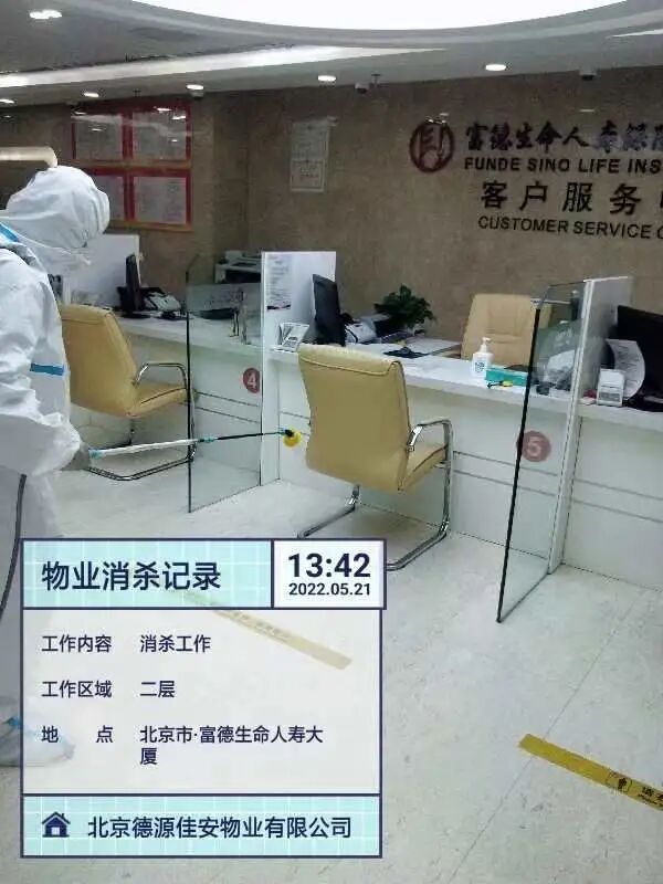 富德生命人寿北京分公司坚持落实常态化防疫举措,进入分公司大厦及职场均需扫码登记、测量体温,并安排专人检查员工及来访者是否按照要求佩戴口罩。自4月份下旬北京地区疫情大面积爆发以来,富德生命人寿北京分公司第一时间严格落实各项防控举措,严抓严控各项防疫措施,职场定期消毒、员工持48小时核酸检测结果阴性方可进入职场,上班期间一律佩戴口罩,保持员工办公距离,坚持开窗通风。