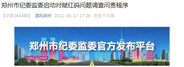 今天(6月17日),郑州市纪委监委网站发布消息,郑州市纪委监委启动对赋红码问题调查问责程序。