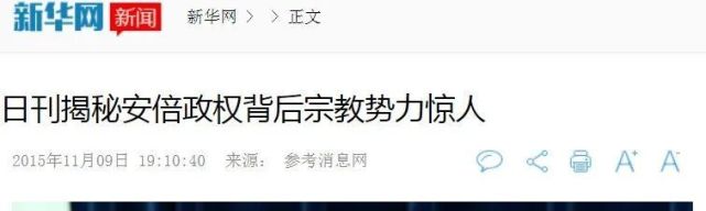 政知道注意到,2015年,新华网转载《参考消息》题为《日刊揭秘安倍政权背后宗教势力惊人》的文章(摘编自日本《朝日周刊》)。