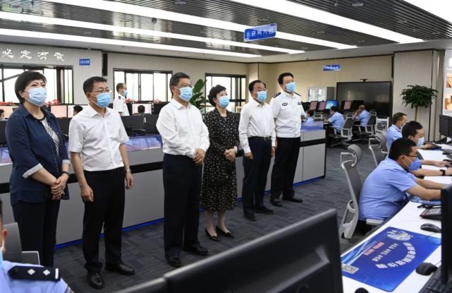 在兰州市公安局、兰州市疫情防控指挥中心和城关区九州主食厨房园区,任振鹤详细了解流调溯源、核酸检测和疫情处置等工作。