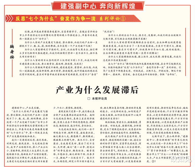 为什么人家的产业发展突飞猛进、势头强劲,而我们的产业却一直摆脱不了小、散、乱、弱、短的弊病,至今没有一个产业突破千亿级!