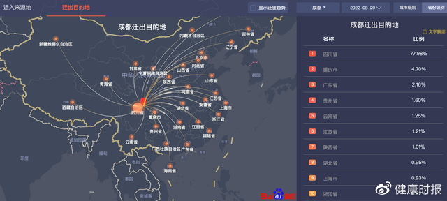 另据《健康时报》报道,近期成都市迁出目的地主要为四川省内。