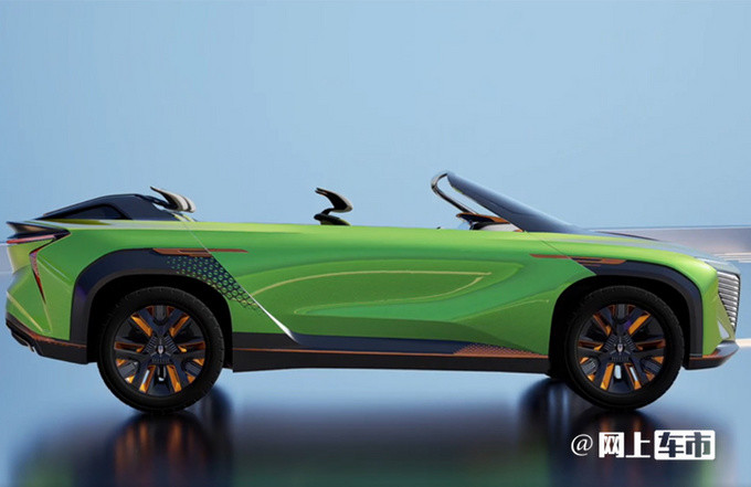 结合此前曝光的概念车来看,新车拥有敞篷版及普通版两种车型可选,前脸采用封闭式设计,中央标志性的红旗LOGO向上一直延伸到引擎盖。两侧前大灯类似翅膀形状,内部配有多个条状发光源,科技感十足。车侧配备了隐藏式门把手,车尾搭载纤长的贯穿式尾灯,尾灯两侧向下延伸呈回旋镖形,下方配有双边四出排气。