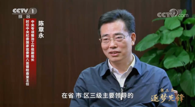 在昨晚的专题片中,中央专项整治工作组副组长、时任中央纪委国家监委第八监督检查室主任陈章永出镜。他说,“总书记的重要批示,在省市区三级主要领导的层层批示中空转。”