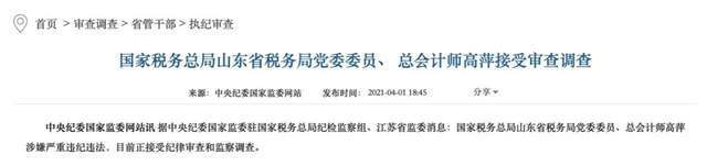 政知君注意到,在高萍被查前一年,2020年6月,驻国家税务总局纪检监察组就收到了审计署移交的关于“高萍亲属与山东省国税局信息化建设项目承包方存在经济往来问题”的线索。