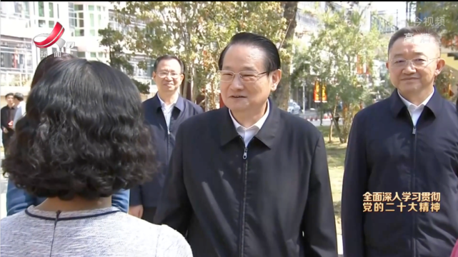10月25日,吉林省委书记景俊海到长春市重庆街道光明社区调研并专题宣讲党的二十大精神。