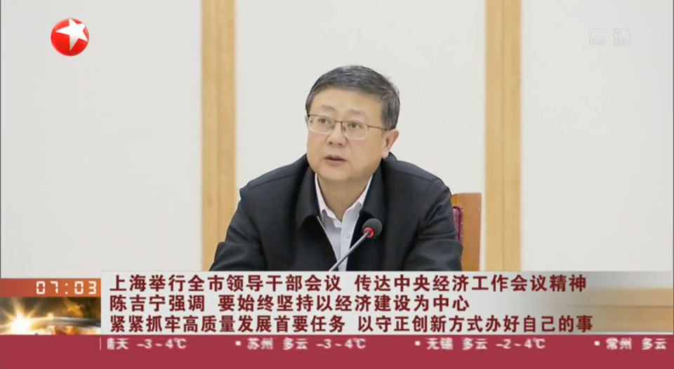 比如,12月17日,上海举行全市领导干部会议,传达中央经济工作会议精神。上海市委书记陈吉宁主持会议。